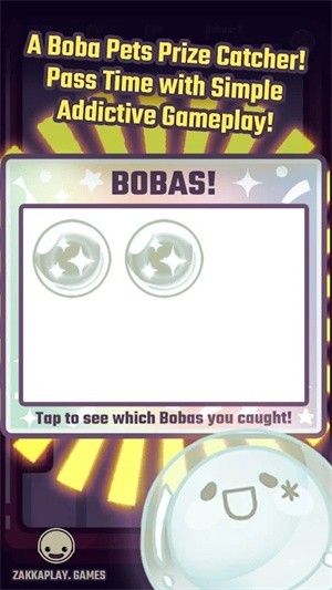 1、在黄色背景界面点击蓝色PLAY NOW按钮开始游戏,注意上方Boba Pop!游戏名称和中间的发光珍珠角色,底部有奶茶装饰图案。