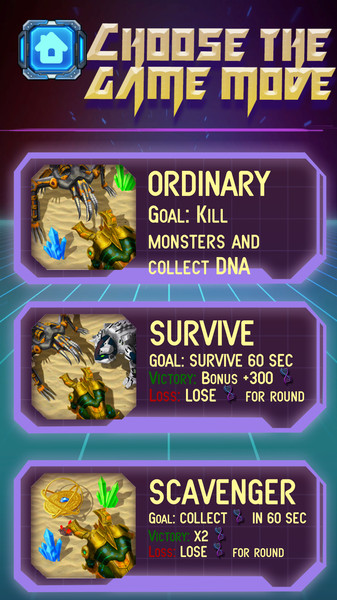 2、选游戏模式,点ORDINARY杀怪,点SURVIVE存活,点SCAVENGER收集物品。