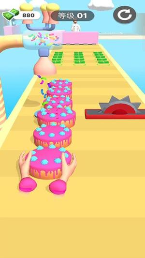 4、抵达终点前需完成指定工序目标,如添加奶油、撒糖珠等,成功制作完整甜品方可通关并获得评分。
